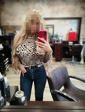 Habe BLONDE lange Haare bis zum PO. BLAUE Augen und volle L*ppen. Ich bin leicht gebräunt, habe Babyweiche Haut und Silikonbrüste in EE. Ich wiege 55Kilo, bin komplett rasiert, 1,68cm groß und habe einen knackigen Körper in Konfektionsgröße 36.
